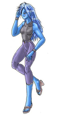 ターコイスブルーの皮膚と藍色の髪を持つスマートなモノキス系。