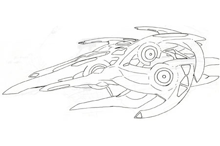 カゴ状に組まれた後部船体が大きな特徴で、この内部に惑星サイズの巨大な動力装置を有する。