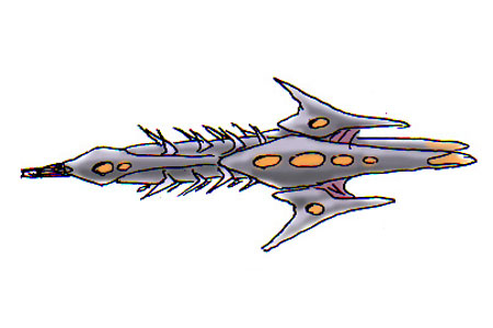 通常空間ではヴィーラ級に似た、外骨格に覆われた翼竜のような外観を持っているが、